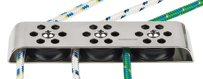 7 Series Triple Stainless Steel deck organizer. Stainless Steel base and anodized aluminum top strap provide a high strength base. Delrin(tm) sheaves ensure smooth operation and high strength. Boats to 45'. Aluminum Sheave available - order sheave #62-023-15cw.